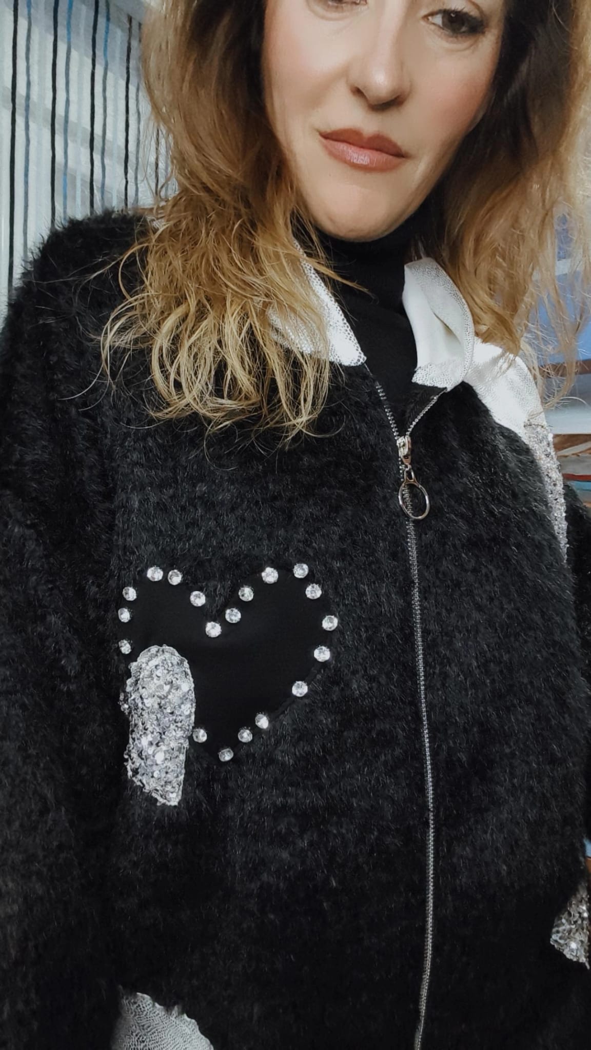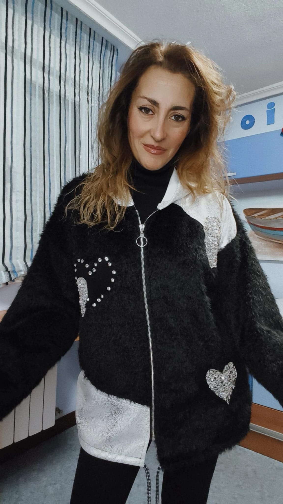 ABRIGO PELO NEGRO Y PLATA