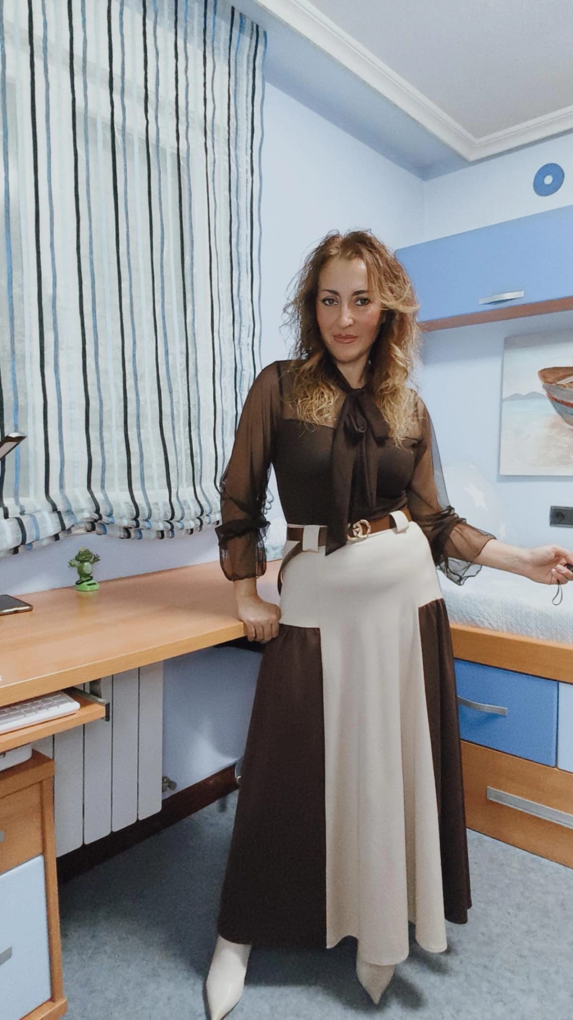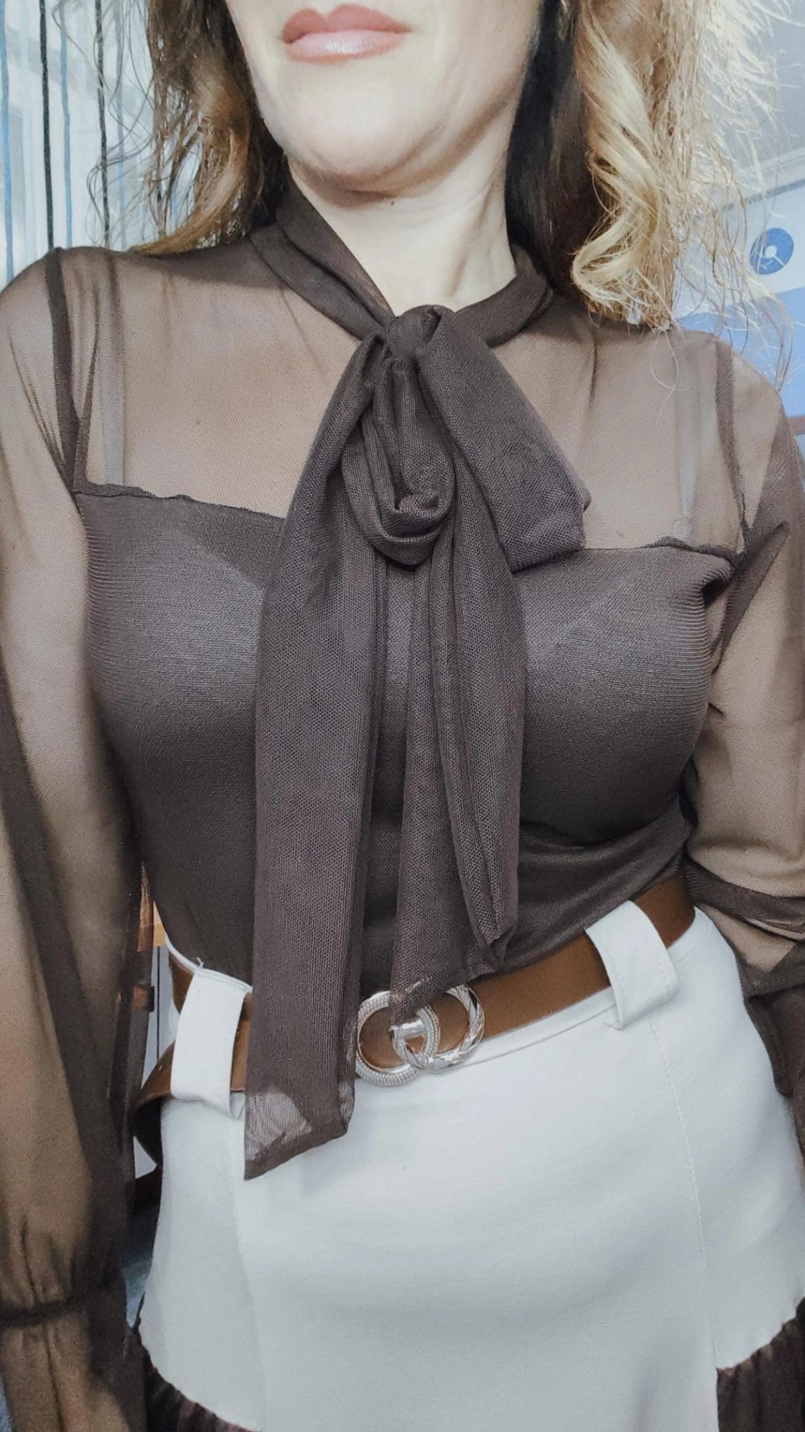 Blusita de tull en color chocolate. Con forro en la parte delantera para no transparentar. Ideal hasta talla 42.