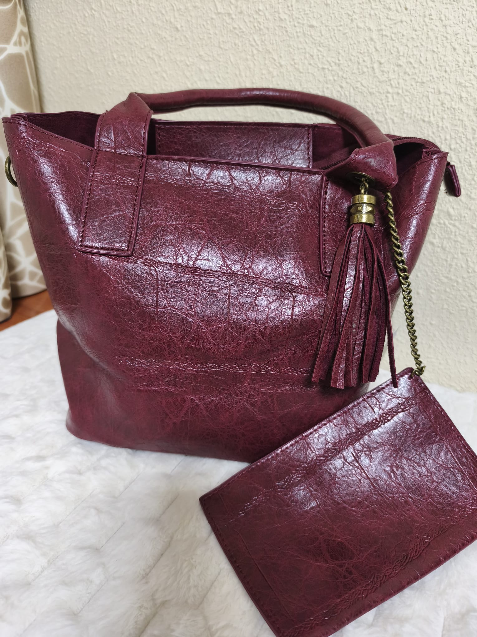 Bolso burdeos efecto piel