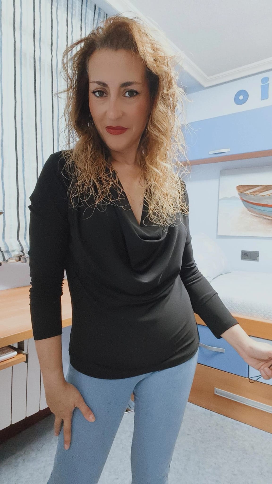 Camiseta con escote elegante de color negro. Talla única, ideal hasta talla 42