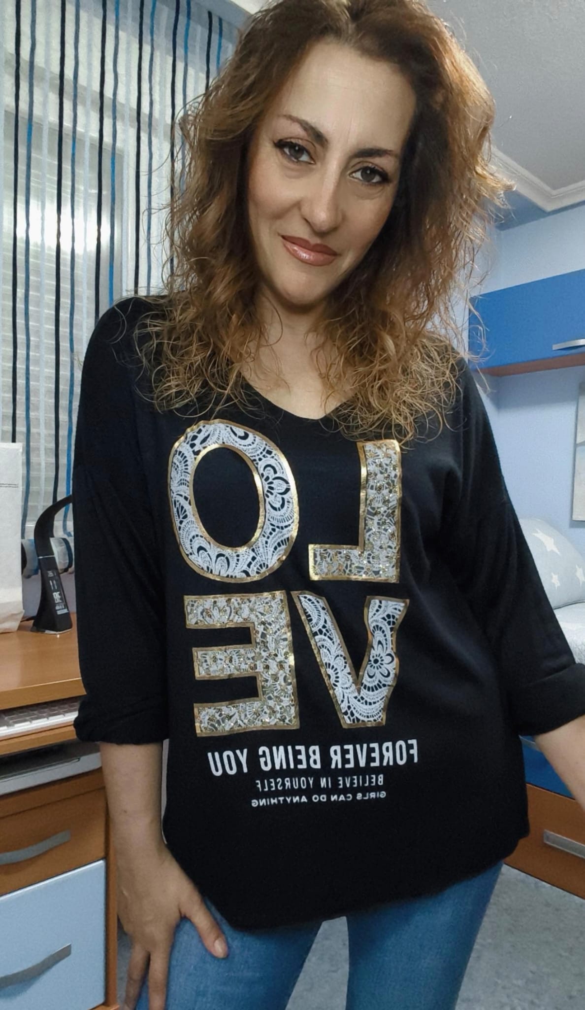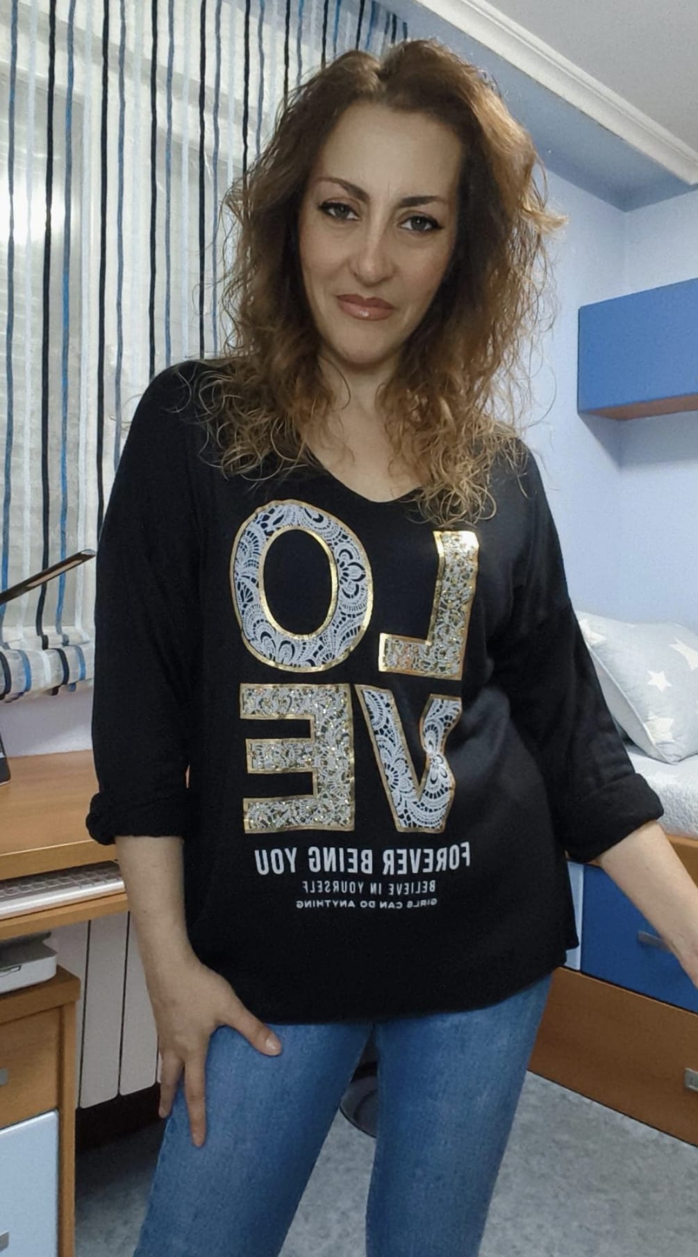 Camiseta con un tejido muy suave y agradable en color negro con letras y detalles especiales. Ideal para los looks más cómodos. Medida de contorno de pecho 110 centímetros. Medida de largo 60 centímetros.