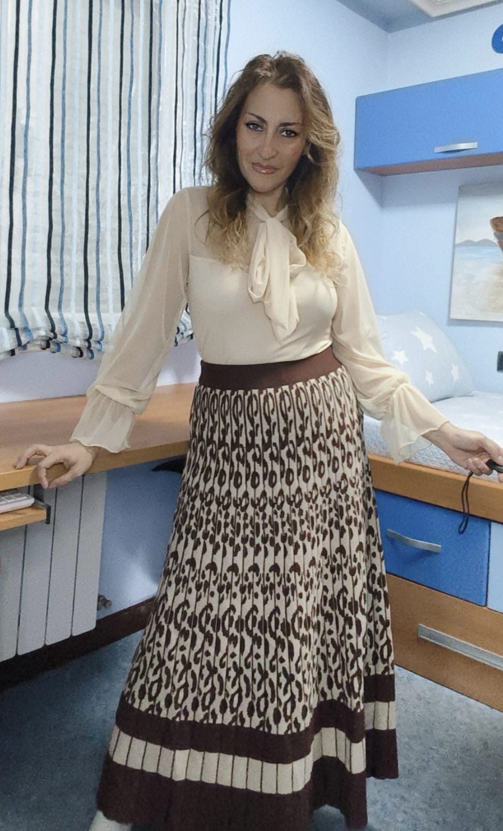 Falda de punto firma Milano en colores beige y chocolate. Cintura engomada. Ideal desde talla 36 hasta talla 42.